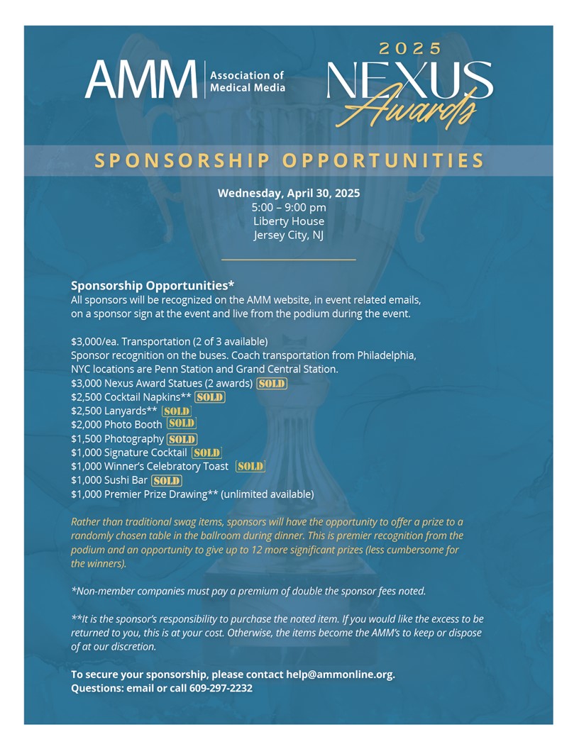 ![]() The Nexus Award is a part of the AMM's commitment to strengthening the medical publishing industry. By setting a standard and recognizing those who exceed it, the AMM endeavors to inspire others and reinforce the value of journal advertising. To receive the Nexus Award is to be recognized among the elite in service, professionalism, and communication.